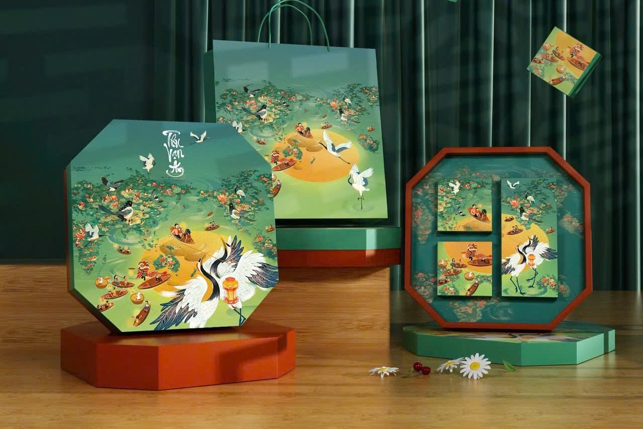 Hộp Bạch Hạc Sum Vầy nổi bật với màu xanh ngọc xanh mát , những muôn thú hoà vào điệu nhảy của những chú bạch hạc dưới ánh trăng vàng vừa nhẹ nhàng mà không kém phần nổi bật.